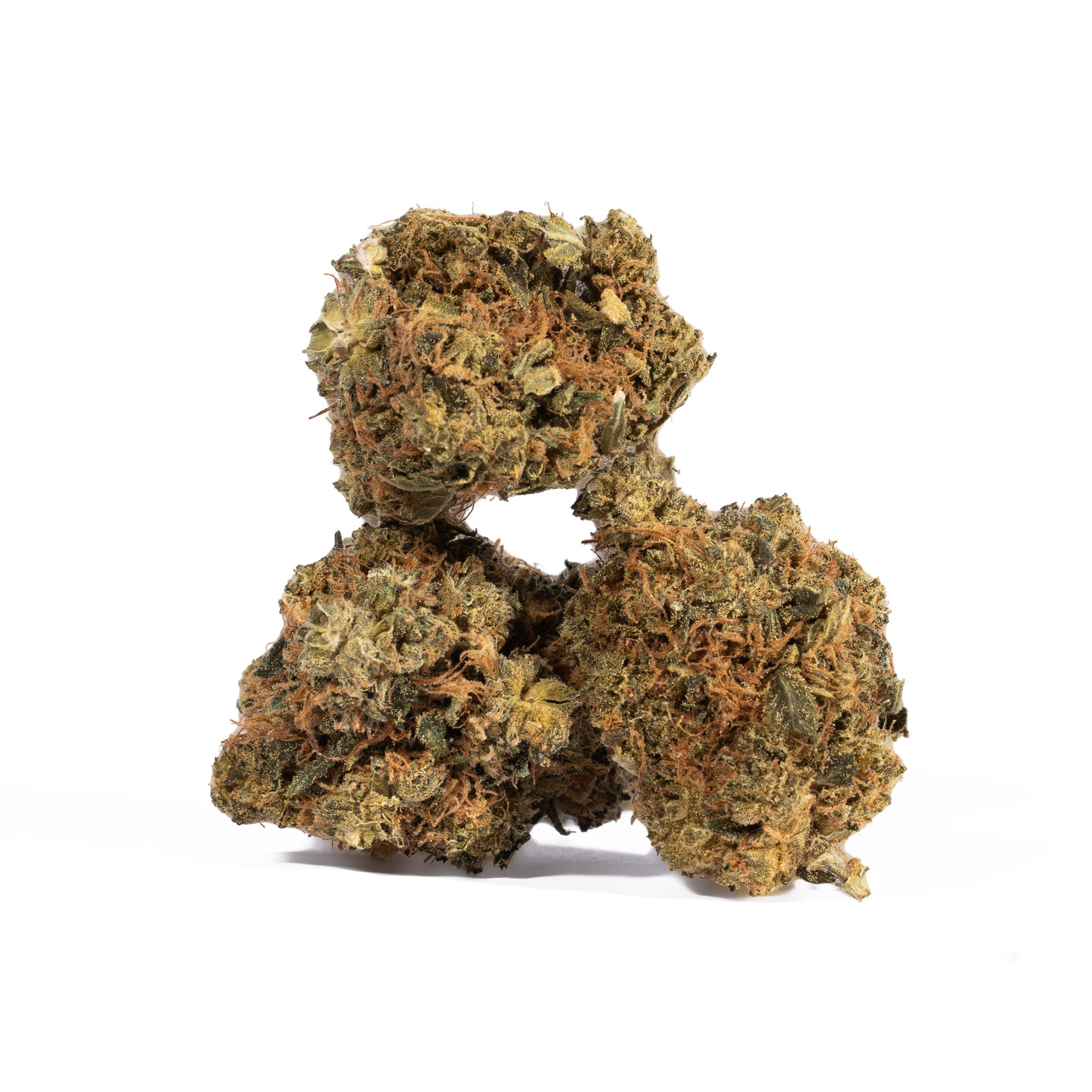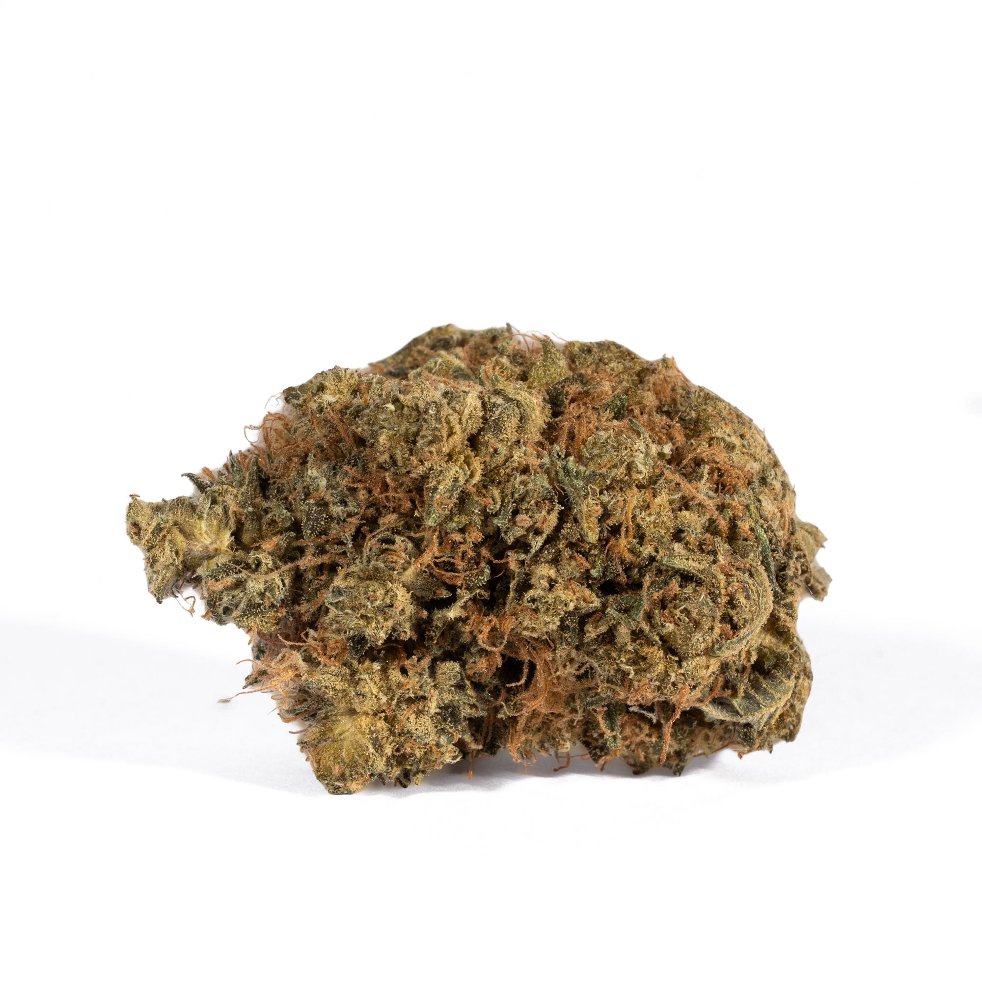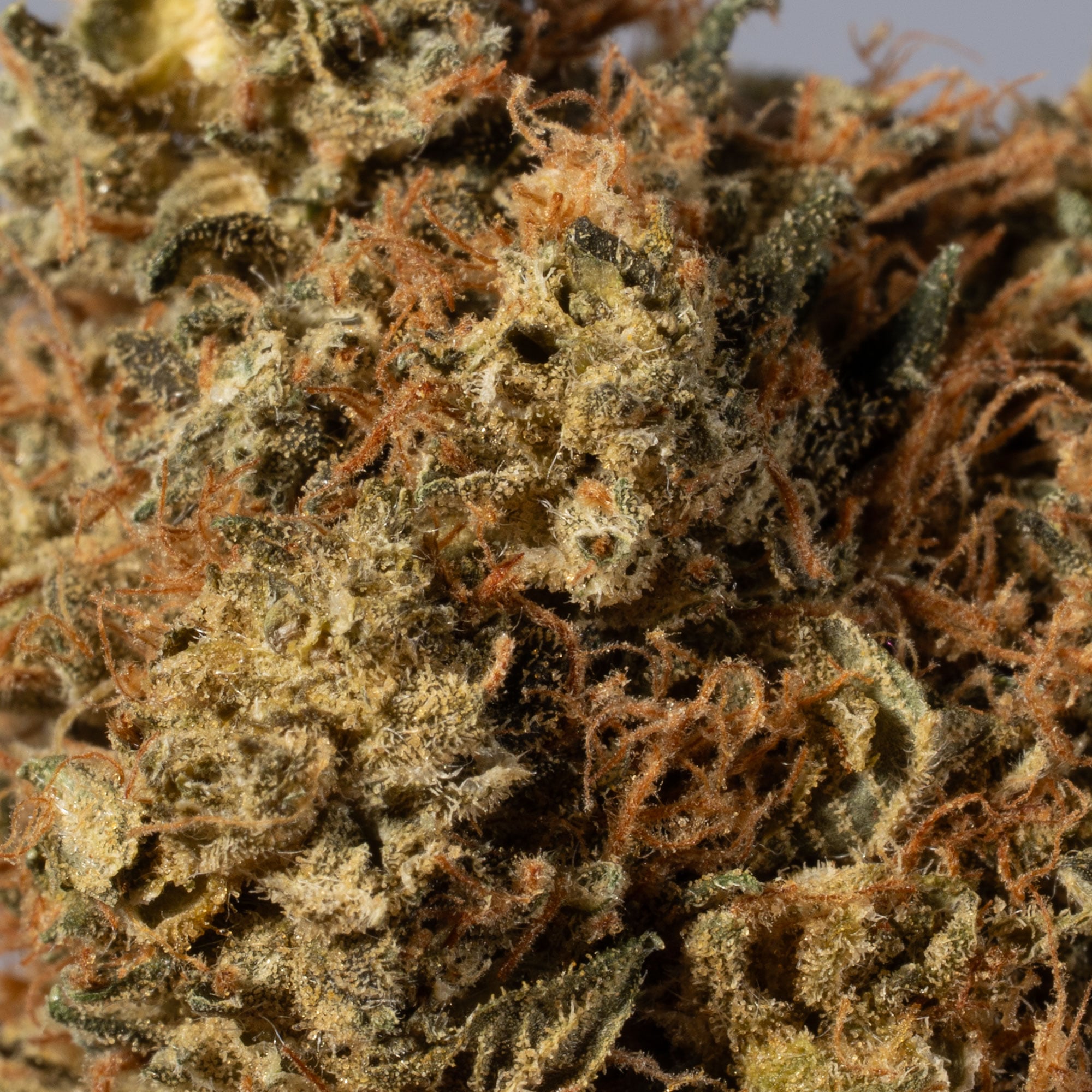 Death Bubba is an indica dominant hybrid (70% indica/30% sativa) strain created as a descendant of the hugely popular Bubba Kush strain. This dank bud boasts an average high THC level that ranges between 19-21% and effects that can end in an almost death-like sleep. Almost immediately after smoking, you’ll feel a wave of rushing focused energy wash over you that leaves you uplifted and motivated with tendencies towards having psychoactive experiences. As the high continues, you’ll be eased into a state of utter relaxation with deep introspection and spaciness that can cause you to become distant in social situations. Upon the comedown from the high, Death Bubba pulls you into a deep and peaceful undisturbed sleep that lasts for hours on end, giving you the appearance of being unwakeable. Death Bubba has an aroma of musky earthy pine and a taste of spicy lemon pine with a hint of pungent earth upon exhale. This bud has medium-sized dark forest green nugs with rich purple undertones and a spattering of fiery orange hairs. Each nug is completely covered with dark olive green leaves that are almost furry and have a thick layer of frosty sandy white trichomes.