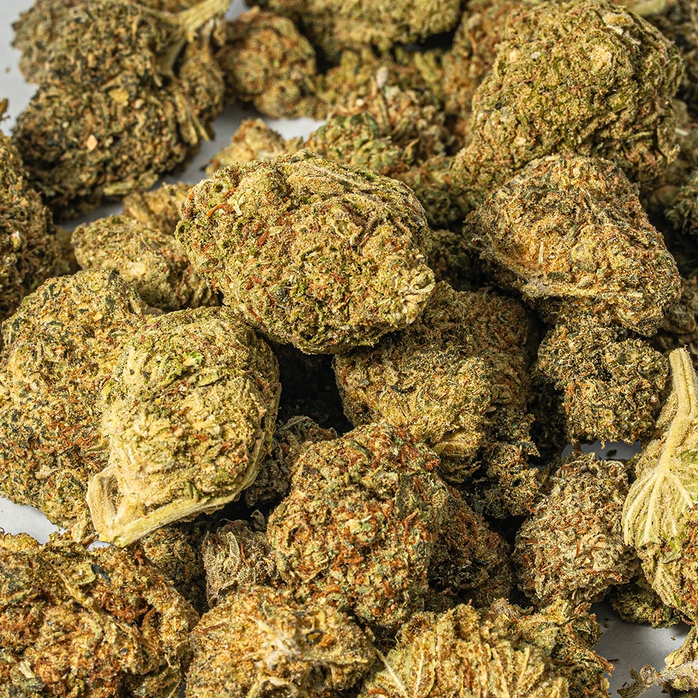 Strawberry buds are visually striking, with medium to large, dense, popcorn-shaped nugs in deep olive green. Each bud is coated with sticky resin, accented by light amber hairs that add to its appeal. Beyond its looks and flavors, the Strawberry strain is cherished for its balanced effects. With THC levels typically ranging from 15 to 18 percent, it delivers a gentle, uplifting cerebral buzz without paranoia, followed by a soothing body relaxation that melts away stress and tension.